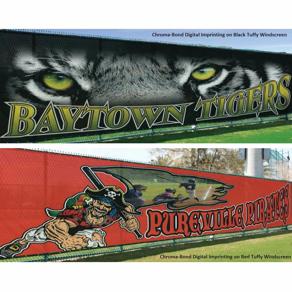 The Aer-Flo TWS5 Tuffy windscreen measures 5′ in height and is made with Aer-Flo’s exclusive Vipol™ Matrix material, a virtually tear-proof, super-durable mesh fabric comprised of tightly woven micro-fibers. Tuffy is the only windscreen finished with double-needle lock stitching, eliminating unraveling thread of traditional windscreens that are fully chain-stitched. The Tuffy privacy windscreen features all around edging with high-quality grommets that are installed every 12” inches. The Tuffy windscreen allows 22% wind pass-through with a shade factor of 78%. Give your Tuffy windscreen a professional look and enhance you team’s brand with sharp multi-color imprinting. This custom artwork is available via Aer-Flo’s Chroma-Bond® imprinting process that produces thousands of sharp multi-color images for teams at all levels. Also offered is Aer-Flo’s new state-of-the-art Chroma-Bond® digital imprinting that produces vivid, finely detailed images that are highly resistant to UV sunlight and abrasion. The Aer-Flo TWS5 Tuffy windscreen is backed by a 5-year factory warranty.