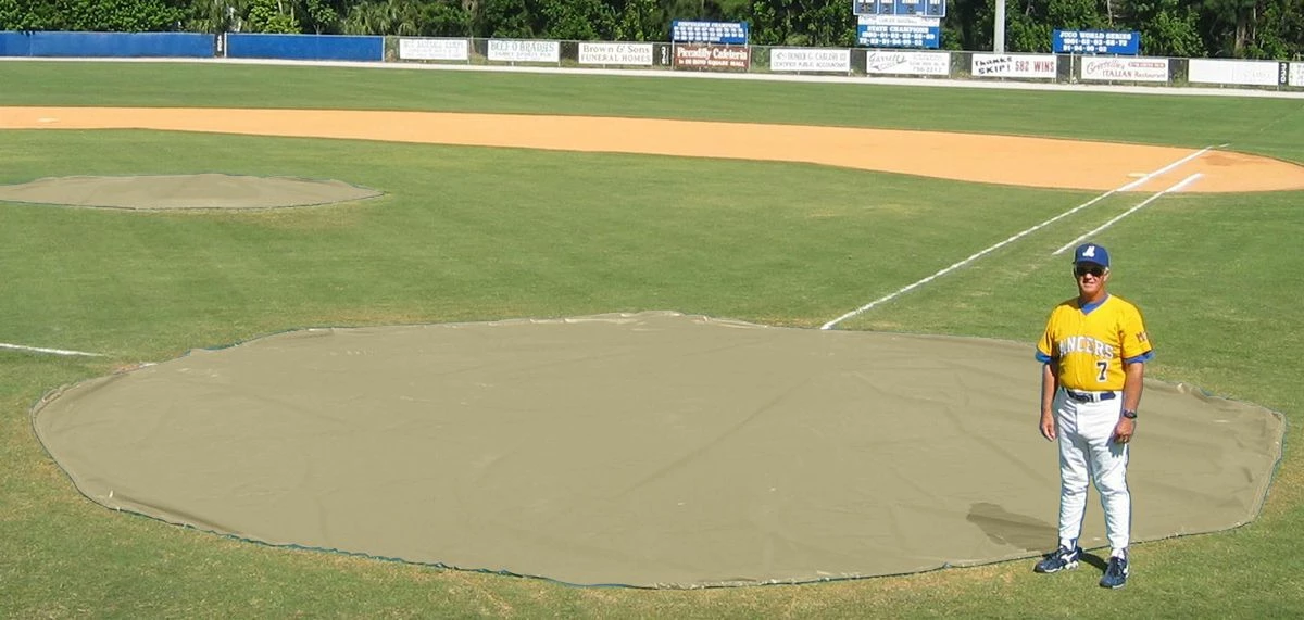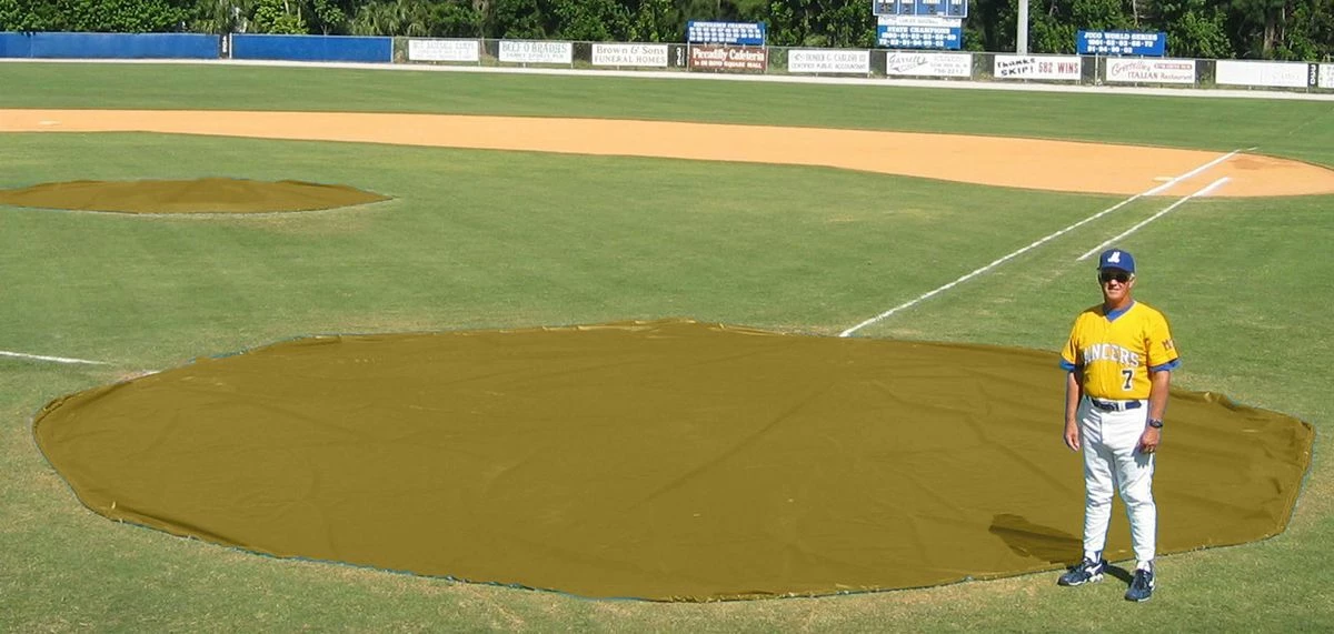 The Aer-Flo WWV1830, 30′ diameter wind weighted mound/homebase tarp weighs 126 lbs and stays put without stakes or sand bags! A steel chain is sewn into the edge hem all around the cover to keep the wind from getting under. These tarps are proven to stay down in winds over 65 miles per hour. Expertly constructed of heavy duty 18oz, UV protected vinyl that will last season after season! Save time by eliminating the need for stakes and sandbags.