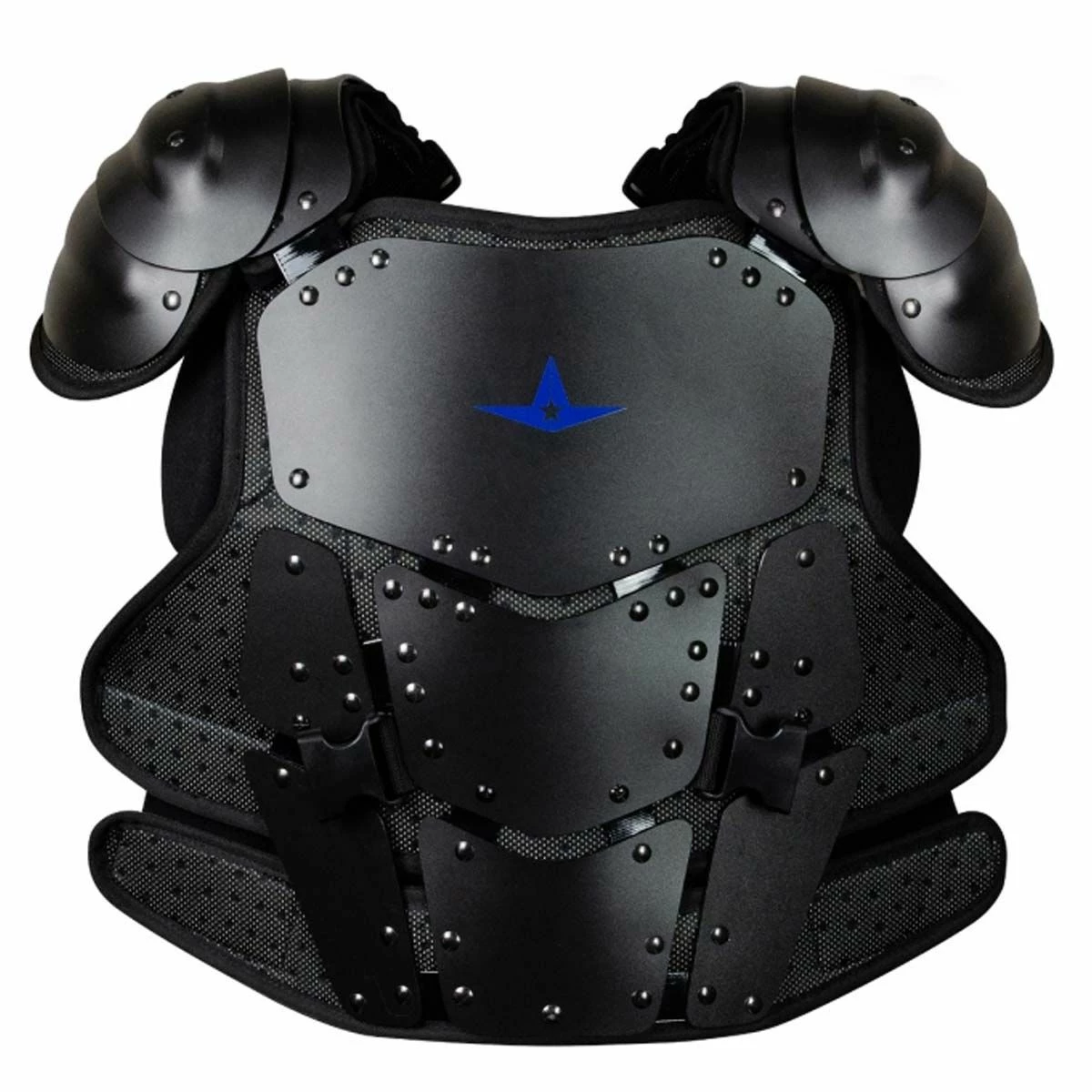 The All-Star Cobalt umpire chest protector features a low-profile countoured hard shell that uses 3.7mm thick HDPE pre-curved armor plates with hinges to conform to any body shape. The pre-curved shoulders allow this chest protector to hang on, and not slip down, for superior collarbone protection. A removable extension feature is included that adds another 3.5″ of seamless protection for taller officials. The shoulder guards can move outward by 1/2 inches for larger officials. A removable shoulder gap cap allows for an even lower profile fit. The armor plates can be bent and formed to your own desired custom shape. A patented central cooling channel with removable and washable chest pads also allows you to swap in a dry set for a long day of tournament games. The DeltaFlex™ harness has hookups in the front for easier on/off.