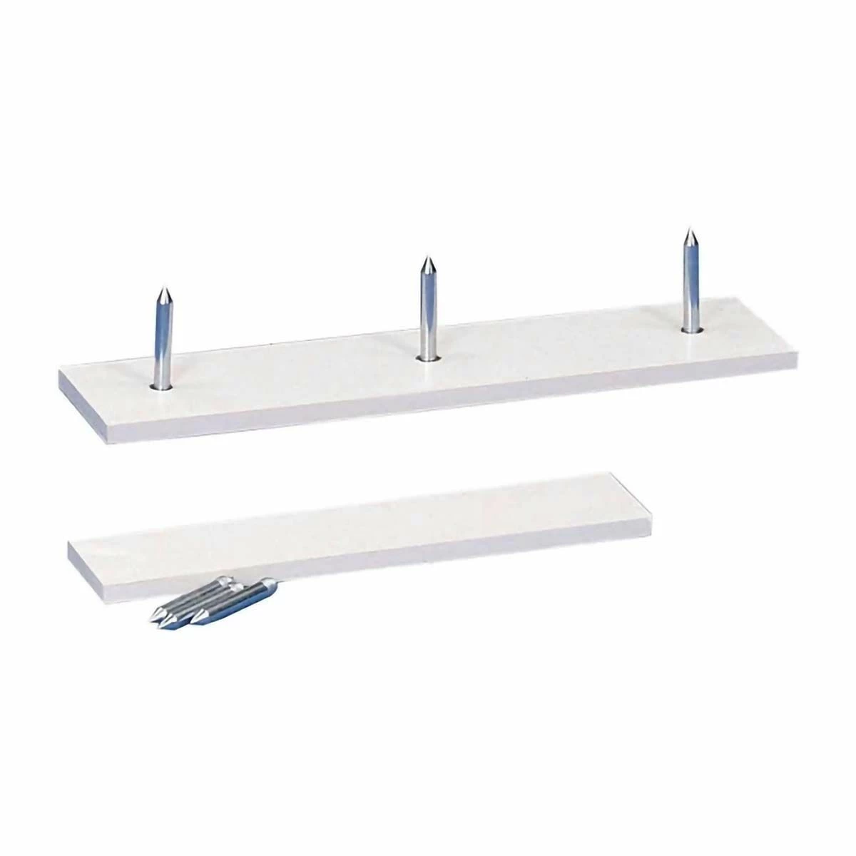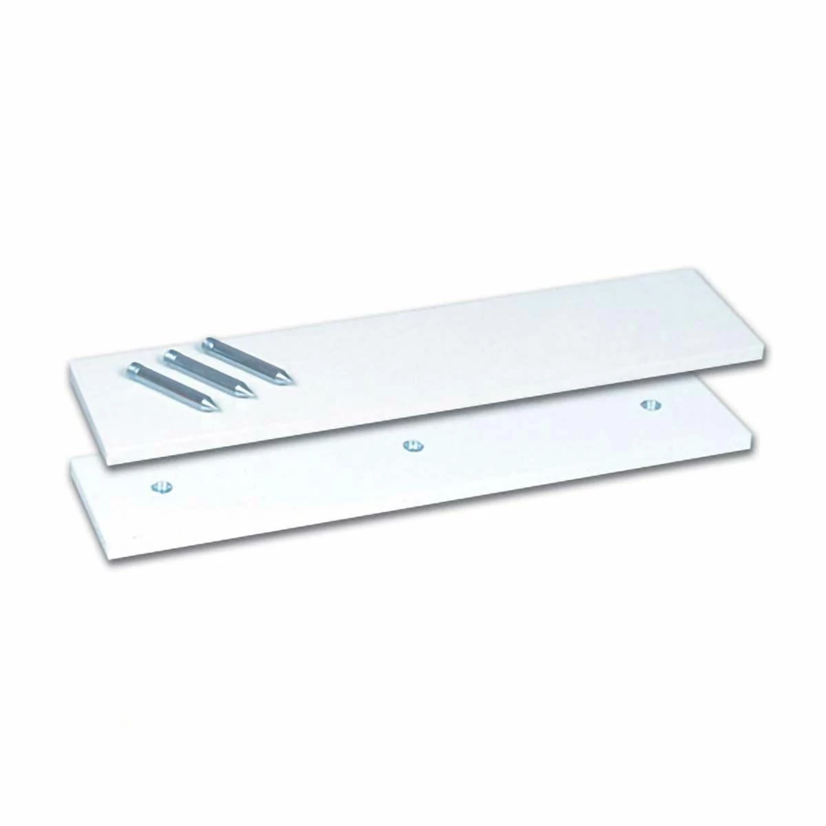 The Champro B041 3-spike pitcher’s rubber comes in an 18″ length for youth leagues. This pitcher’s rubber is equipped with reinforced threaded steel spike fixtures and includes three nickel-plated steel spikes that secure the rubber firmly in the ground. This solid white pitching rubber is made with heavy duty, 1.75 cm thick UV-resistant rubber to endure the pressure of spiked shoes and prevent deterioration caused by prolonged exposure to sunlight. The Champro B041 pitching rubber can be used for both baseball and softball.