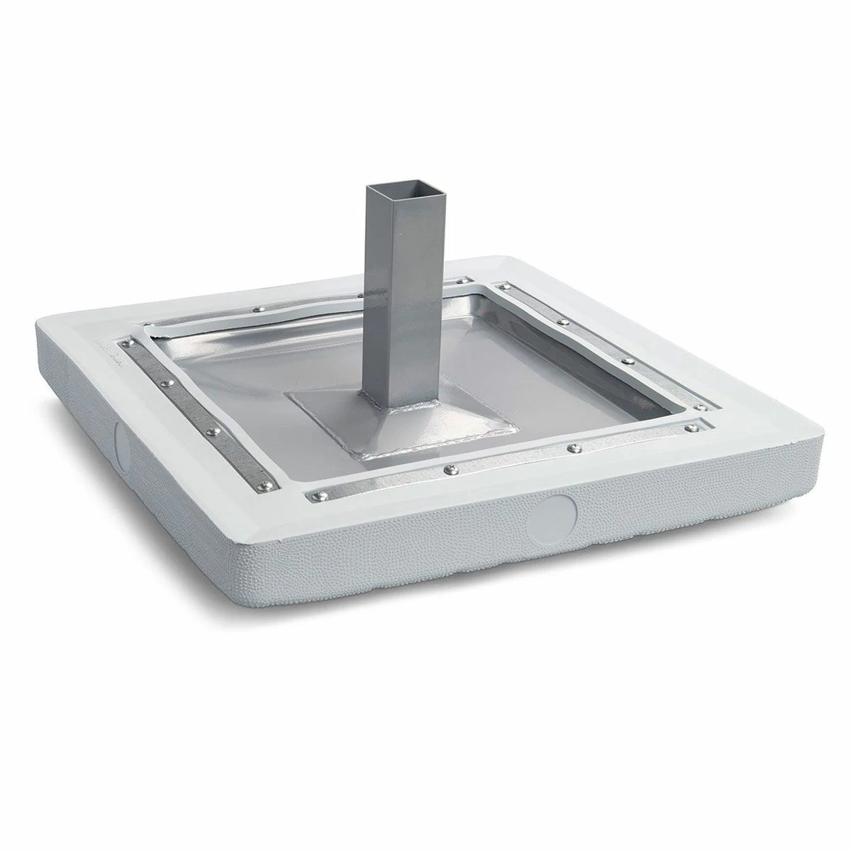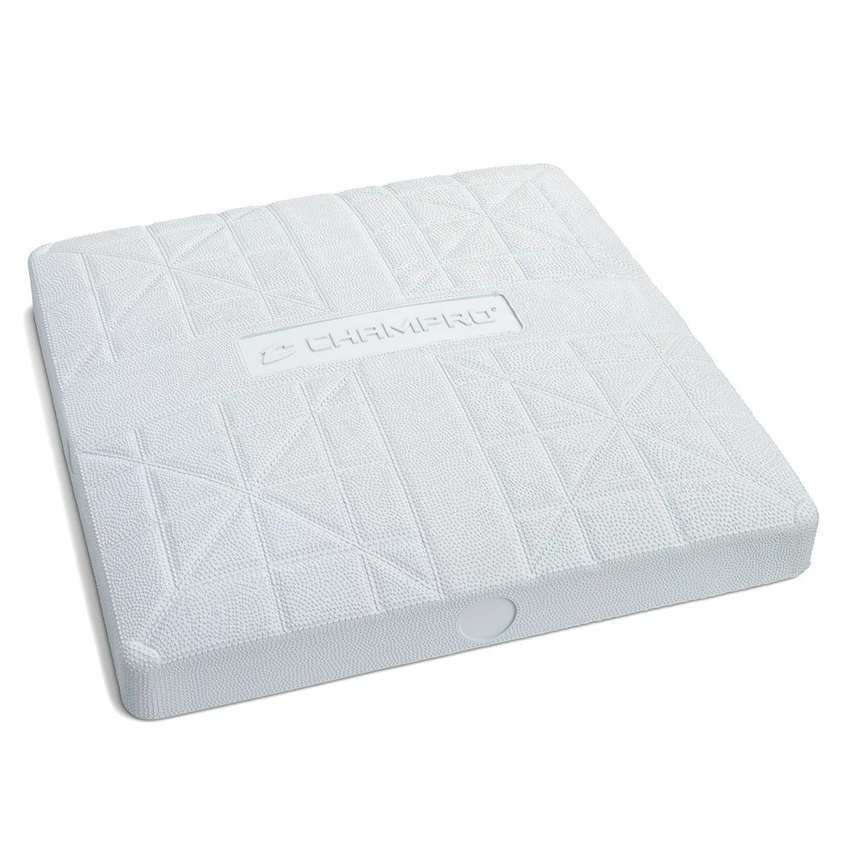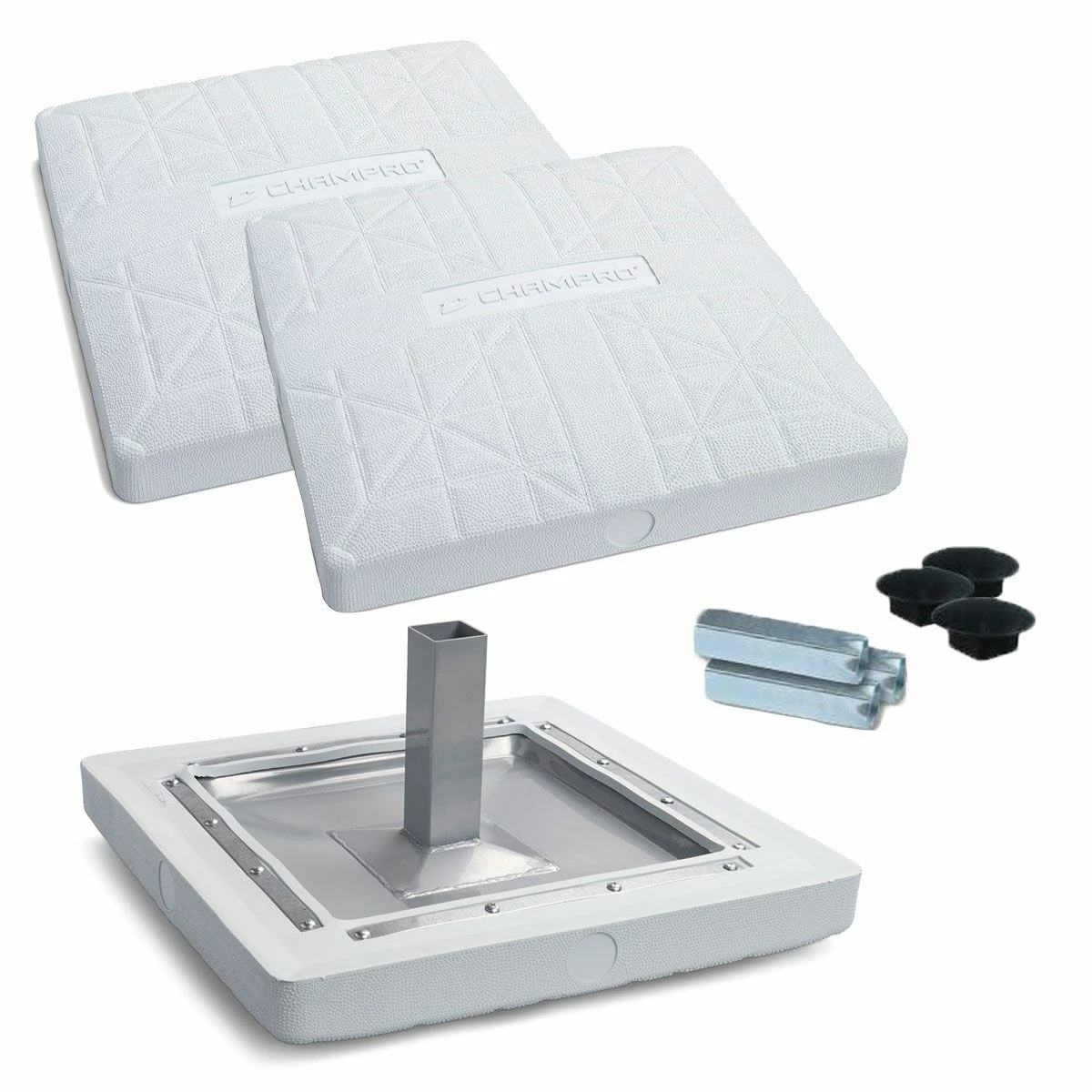 The Hall 15” x 15” x 3” baseball bases from Champro are designed for rugged and extreme use on the diamond. This set of three white rubber bases are pebble-embossed and UV-resistant for long-lasting durability. A welded steel anchor system and stanchion pan is triple reinforced and rust-resistant for ultimate protection and strength against the elements. Installation is easy with the included ground anchors and base plugs for when it’s time for removal.