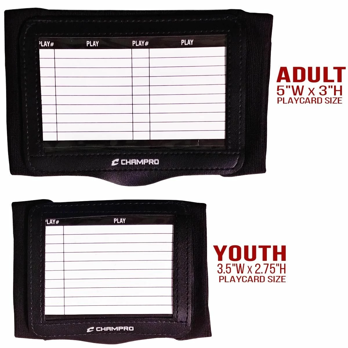 The Champro AF50C Quarterback Playbook Wrist Band gives QB’s easy access to all their offensive plays with its triple playcard design. The AF50C wrist coach is great for use at all levels of play and is available in adult and youth sizes. The triple playcard quarterback wrist band is a must-have for signal callers of all ages.