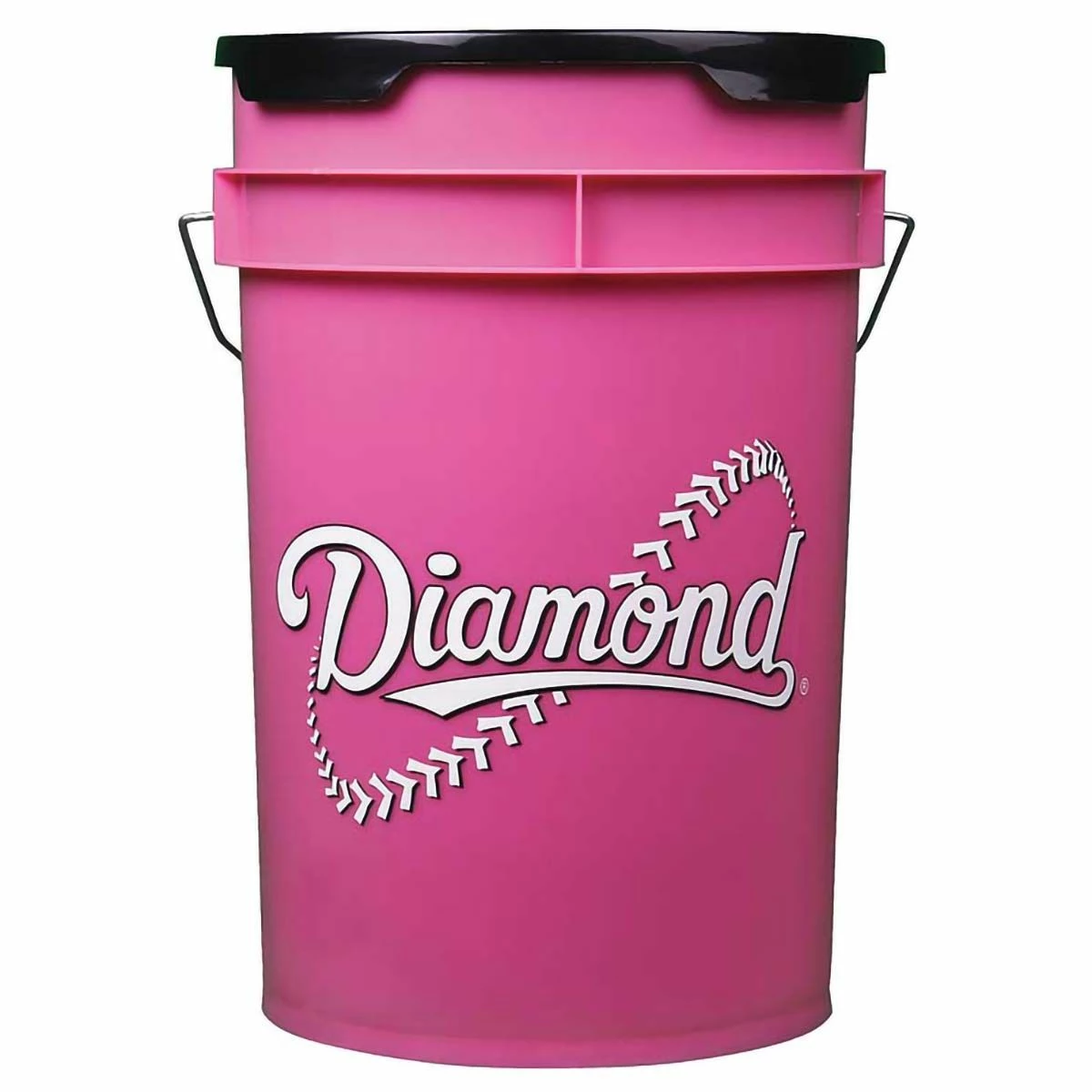 The Diamond softball bucket has a padded seat for comfort and can store two dozen softballs. The unique pink color looks new longer.