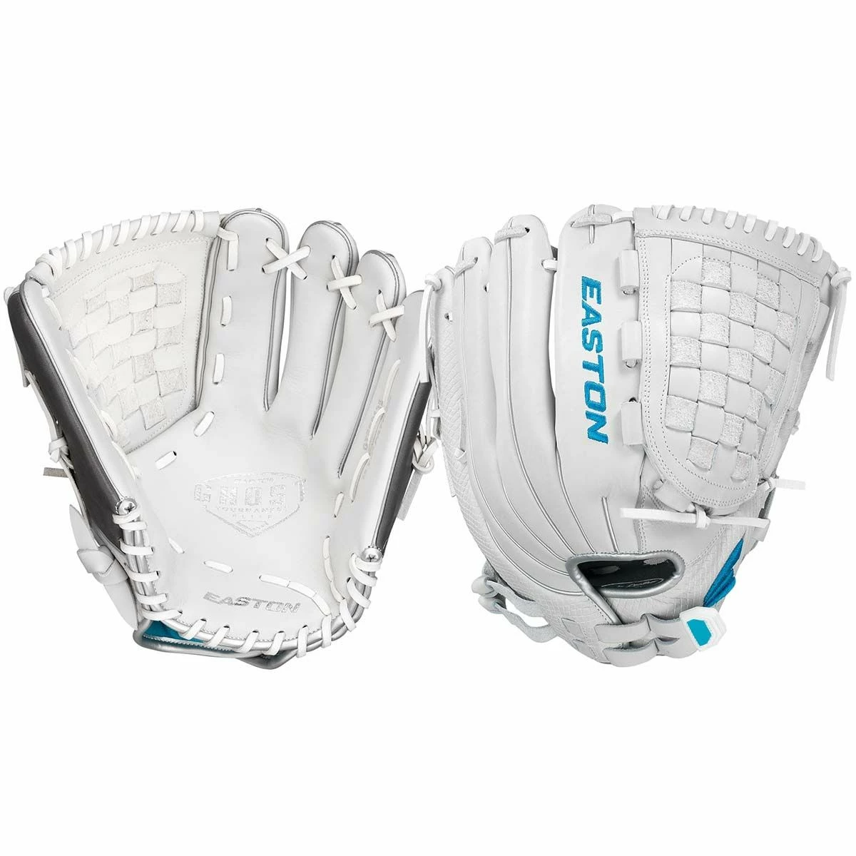 The 12.5″ Easton Ghost Tournament Elite fastpitch softball glove is designed for the high school and travel ball player that might not yet have the hand strength of the college player, but still demands a glove that will stand up to daily use. This glove is handcrafted with Diamond Pro Steer™ USA leather and a supple leather lining for added comfort and feel. The Quantum Closure System™ is fully adjustable for a tighter, more secure fit and optimal control. Professional grade rawhide laces add durability, while the snakeskin embossed leather accents and metallic chrome binding add extra flare.