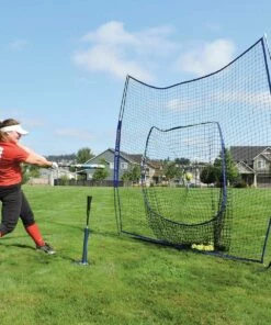 Get your cuts in anywhere with the portable Jugs 5-Point softball hitting tee package. This package includes a 5 position hitting tee that teaches the player to “hit the ball where it’s pitched,” an 8 foot travel screen and 2 dozen yellow dimpled sting-free softballs. The 5-Point batting tee (#A32-083) teaches correct contact points for inside, middle, and outside pitches. This tee works great to develop hand-eye coordination, a quicker bat and teaches the hitter to use the whole field. The 8′ travel hitting screen is perfect for tee practice, toss practice or soft toss practice and comes complete with a heavy-duty 43” nylon travel bag.