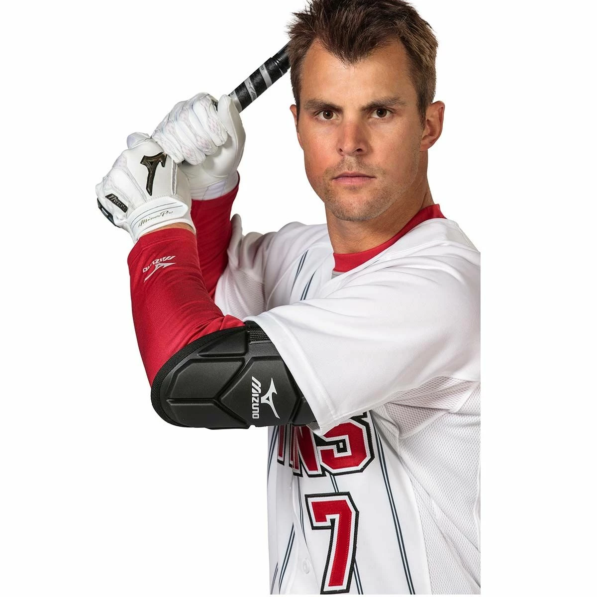 The Mizuno Batter’s Elbow Guard is armed with a TPU injected material that offers great protection and a light-weight feel. The elbow guard is equipped with an adjustable velcro® strap for a comfortable, snug fit. The guard’s one-piece construction offers maximum mobility and comfort. The elbow guard features an inner lining made with DryLite, Mizuno’s patented breathable material to keep you cool.