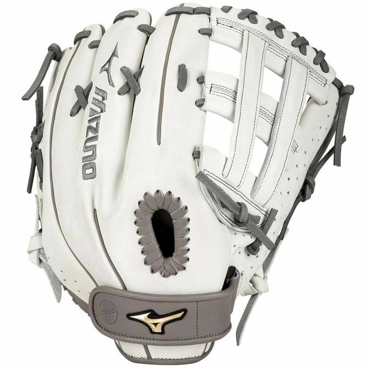 The Mizuno GPE1300F1 prime elite fastpitch softball glove features a 13″ pattern with an H-web design, making it ideal for outfielders. This fastpitch glove is equipped with soft, smooth leather that is durable while offering a pro-level feel. The prime elite’s UltraSoft pro palm liner provides a soft feel and finish in the pocket. A perforated thumb and pinky panel design reduces the glove’s weight and increases its breathability. The finger core technology offers a finger stall shape that helps improve flexibility and control when making a tough play, while also providing a more comfortable option for players who prefer to shift their ring finger to the pinky slot. Designed with fastpitch patterns that make the prime elite an excellent glove choice for serious fastpitch players.