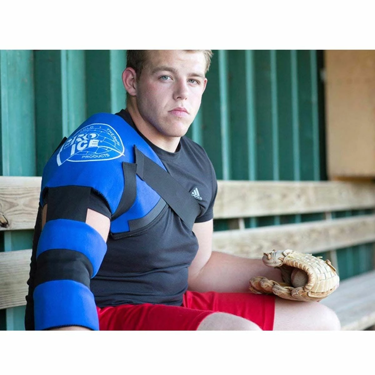 Pro Ice is the premier cold therapy for pitchers. The Pro Ice Cold Therapy Shoulder Wrap treats injuries to the shoulder and elbow. This Ice Cold Therapy Shoulder Wrap is portable, easy-to-use and can be applied at the field of play. The Shoulder Wrap unit covers the rotator cuff, upper arm and elbow. Simply place this reusable cold pack around the shoulder and elbow. The windowpane format will conform to the body and the compression straps will boost the benefits of the cold therapy unit. The single ice insert will maintain a consistent temperature for one hour. You may freeze the insert inside the wrap or on its own. The ease and convenience of Pro Ice means there will be no drips and no need to rest while you ice.