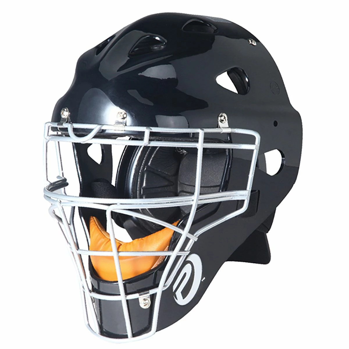 The adult hockey style umpire helmet from Pro Nine is designed to offer safe, comfortable protection behind the plate in all divisions of baseball and softball. The tubular steel wire face mask design provides excellent visibility and is surrounded with a lightweight shell for maximum ventilation. Multi-layer molded foam padding and an adjustable leather chin pad offer superior comfort and protection for those long-lasting games.