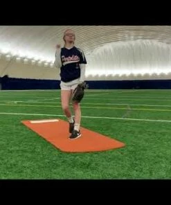 A great softball pitching aid, the Jennie Finch pitching mat comes with a regulation pitching rubber attached. The Power Line mat has a 2″ inlaid white line for more precise training for pitchers of all ages. Each mat comes with a convenient carrying case. The fastpitch pitching mat is made from spike-resistant, extremely durable artificial turf with a special rubberized backing that is guaranteed not to slip on gym floors.