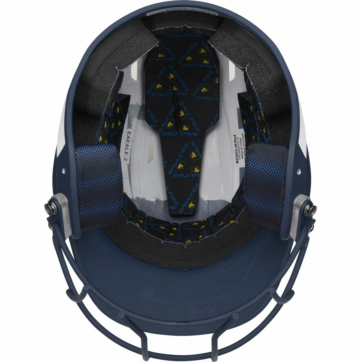 The Rawlings Mach Ice fastpitch softball batting helmet features an attractive two-tone matte finish and is equipped with a faceguard in matching matte team color. The Mach Ice is built with 360º heat exchange technology that provides optimal cooling while you’re taking your cuts at the plate. Available in junior and senior sizes, the Mach Ice softball batting helmet meets the NOCSAE standard for safety.